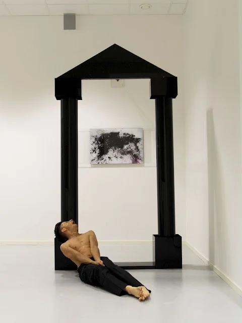 Åsa meant a lot for my establishment in Boda and had been a close link to my performance work. We agreed that one of her installations will be shown in the gallery space of the factory and so we did. Before leaving Romania, I've been thinking of her works and made notations to a specific one, called "A study of the relationship between the hole and the pole". This particular piece has moved me from the first time I saw it on the web. I've been traveling to Sweden with this work in mind. It had occupied my thoughts before meeting it in reality. What strikes me vis a vis this work is its frankness and capacity to enmesh romanticism and philosophical dissertation with my research on chronic occupation of time, action versus duration and anti-duration and political evidence.